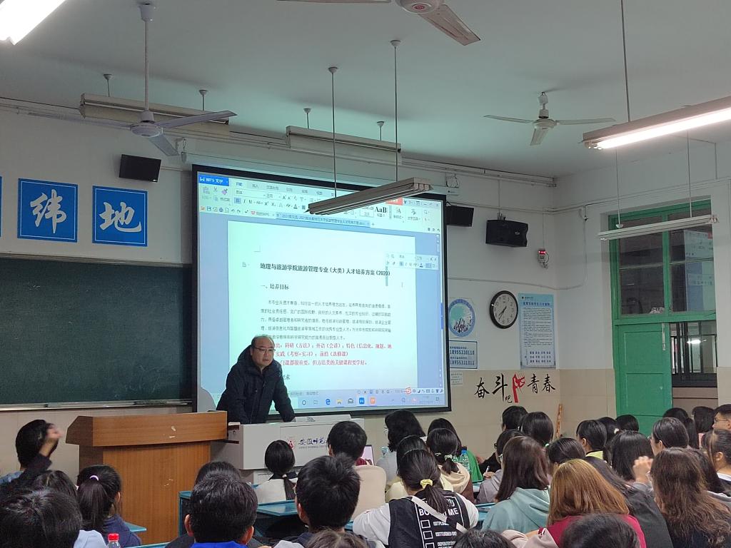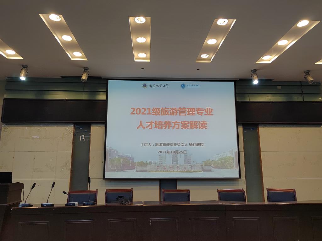 本网讯(565net必赢客户端 李炳臻)为加强学生对专业课程和发展目标的了解,帮助大学生更好的规划大学专业学习。565net必赢客户端旅游管理专业负责人杨钊教授在行知楼为2021级旅游管理专业学生专项解读《2021级旅游管理专业大人才培养方案》的解读讲座。