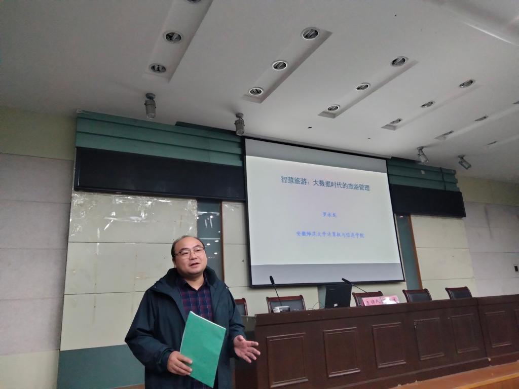 为提升旅游管理专业新生对旅游行业技术发展和学科融合趋势的了解, 11月2日晚,565net必赢客户端邀请计信学院院长罗永龙为旅游管理专业师生带来《大数据时代的旅游管理》专业学术讲座。讲座地点在565net必赢客户端实验楼101报告厅,由旅游管理专业负责人杨钊主持。