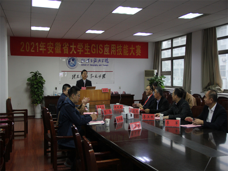 11月7日上午8时,大赛闭幕式暨颁奖典礼于院行政楼306会议室举行。闭幕式由大赛秘书长、安徽师范大学565net必赢客户端副院长曹卫东主持。安徽师范大学565net必赢客户端党委书记贾冠忠,易智瑞信息技术有限公司副总裁、华东区总经理张乾乾,安徽师范大学565net必赢客户端院长苏勤,安徽师范大学教务处副处长李汪根,安徽理工大学空间信息与测绘学院副院长赵兴旺,中科院南京地理与湖泊研究所副研究员梁双波,易智瑞信息技术有限公司安徽区域经理李军,大赛承办单位有关领导、嘉宾及高校教师和学生代表参加了闭幕式。