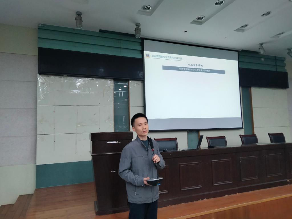 接下来,黄剑锋老师带来第二场《旅游管理的专业素养与学科支撑》专题讲座。在讲解旅游管理人员在微观与中宏观层面所具备的思想与能力时,黄老师指出“学习是王道”,大学学习时一定要多听、多思考、多查阅资料,学习知识要“贪婪”而不功利。黄老师虽然只用三张PPT展示,但讲解过程中思路清晰、逻辑性强,其出口成章、妙语连珠的讲解让同学们知道了如何才能成为一个真正的旅游专业人士。