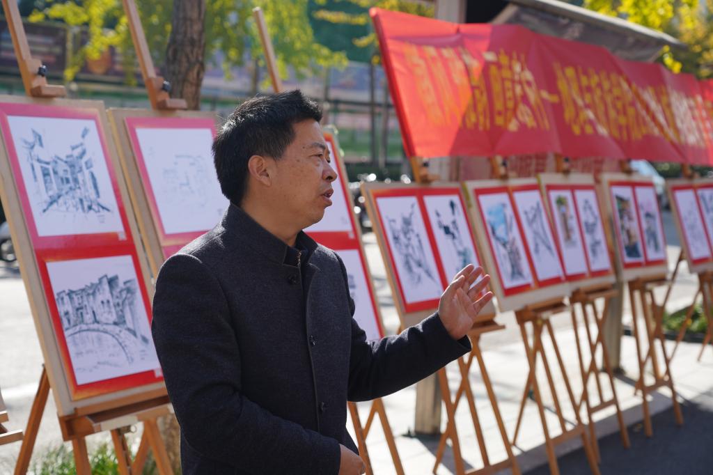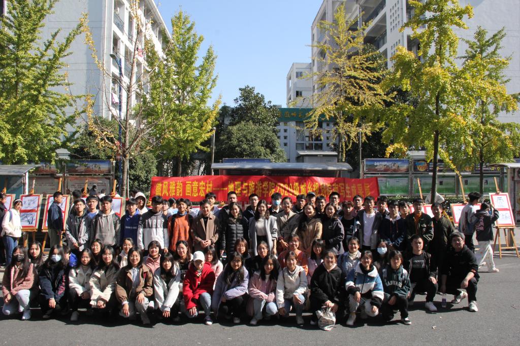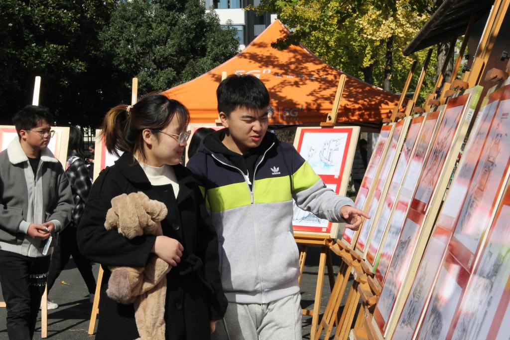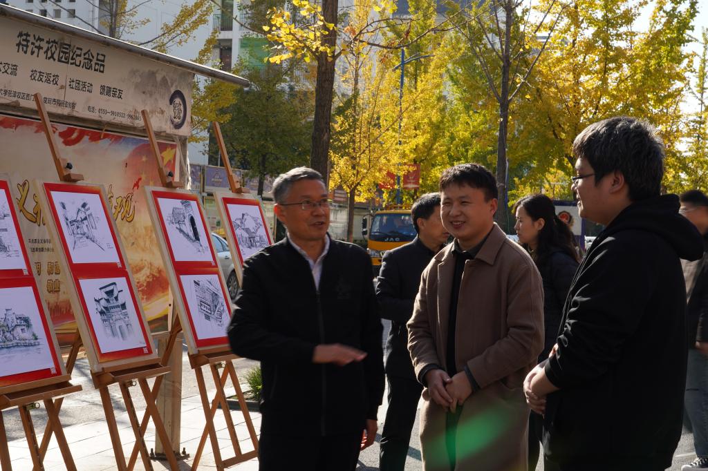 本网讯(565net必赢客户端 刘少杰 耿艺榕)2021年11月10日,565net必赢客户端2020级城乡规划专业在二食堂门口举办“微风雅韵 画意宏村”皖南写生成果展。院党委书记贾冠忠、副院长曹卫东、专业指导老师黄秋实、金莹莹以及学院辅导员在班级同学的陪同下参观并指导了画展,学校各年级专业的学生前来观摩。