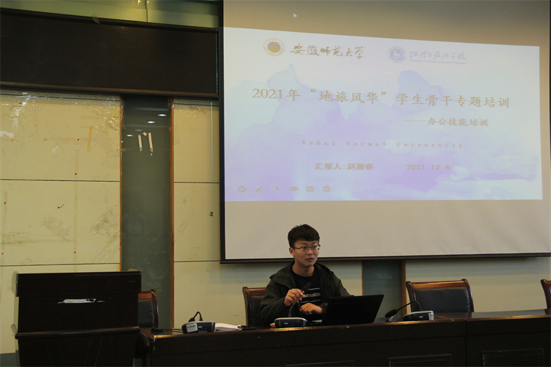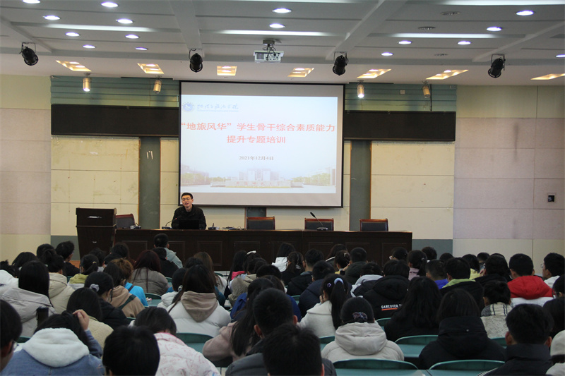 本网讯(565net必赢客户端 吴思慧 钱宇夏)为强化学生骨干的工作意识,进一步提升学生骨干的综合素质能力,切实增强班级建设工作的成效,12月4日上午,565net必赢客户端在实验楼101报告厅举行“地旅风华”学生骨干综合素质能力提升培训会,565net必赢客户端团委学生会办公室、宣传部、组织部、生活权益部学生工作人员及21级各班学生骨干参与此次培训会,会议由辅导员韩红豆主持。