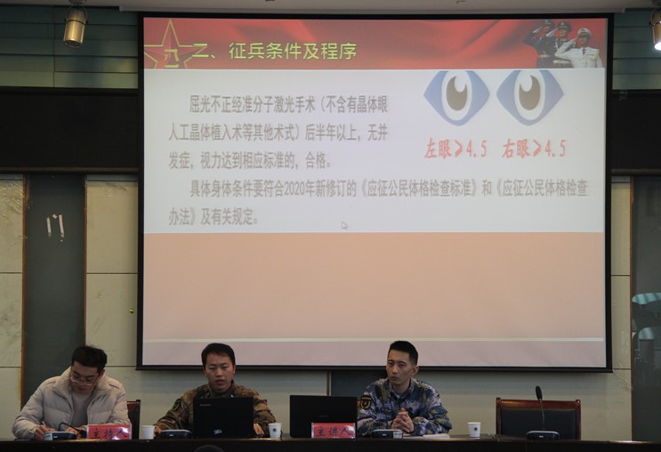 本网讯(565net必赢客户端 韩红豆 林韵佳) 为切实做好必赢2022年春季大学生应征入伍工作,12月8日下午,565net必赢客户端于实验楼101报告厅召开2022届毕业生征兵政策宣讲暨国防教育报告会,镜湖区人武部军事科参谋叶振纯、政治工作科干事安小二、565net必赢客户端团委书记陈祥云、全体毕业班辅导员、阿卜来提·阿卜力克木等四位优秀退役大学生代表以及全体毕业班男生参会,本次会议由韩红豆主持。