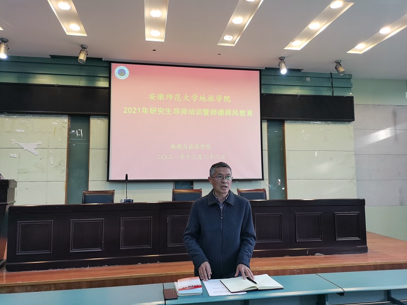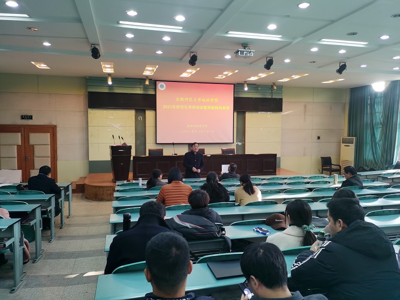 接下来,分管院长方凤满教授带领全体导师学习了教育部、国家发展改革委、财政部下发的《关于加快新时代研究生教育改革发展的意见》以及《安徽师范大学学位与研究生教育质量提升计划(2021—2025年)》等文件。指出导师要根据文件精神,敏锐地关注到学位点和研究生培养的未来方向,强调谋划研究生课程思政、一流研究生课程建设、研究生教学成果奖、加强与行业企业与科研单位的研究生协同培养和联合培养机制,鼓励教师在研究生人才培养方式上进行探索,提升研究生培养质量。并通报了今年学院研究生培养的一些成效,学位论文一次性检测通过率达到100%、学位论文盲审通过率100%、国务院博士论文抽检通过率为100%(共抽检3篇)等,肯定了导师的指导能力,并对各位导师对全体研究生的悉心指导表示衷心感谢。
