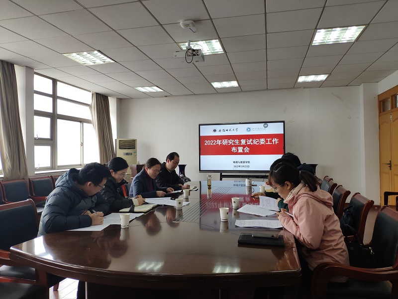 3月23日上午,565net必赢客户端2022年研究生复试纪检工作布置会在学院四楼会议室举行,院党委副书记、纪委书记乔静传达校纪委有关精神并做工作部署,院党委副书记、院长方凤满受邀列席会议并讲话,院纪委委员、研究生秘书、有关工作人员参加会议。