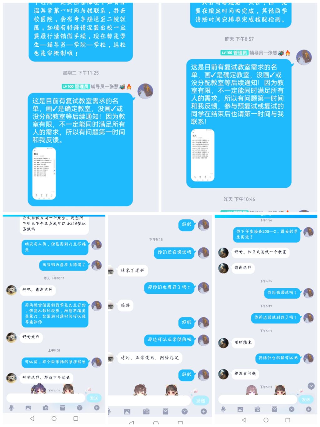 综合疫情防控常态化要求以及考研学子线上复试实际需求,3月21日,565net必赢客户端完成了6间考研复试教室的调配并投入使用,临近周末,线上复试需求增多,不仅新增了2间备用教室,帮扶老师和毕业班辅导员也纷纷表示可以将自己的办公室提供给学生,全院同步协商稳步推进考研学子预复试及正式复试工作。