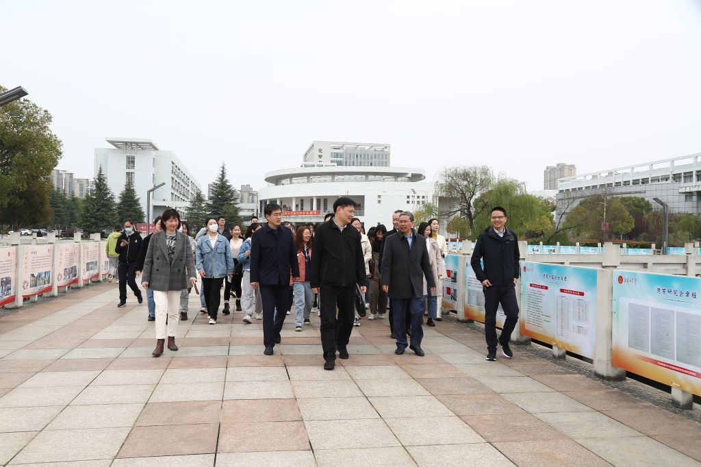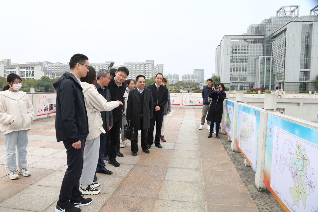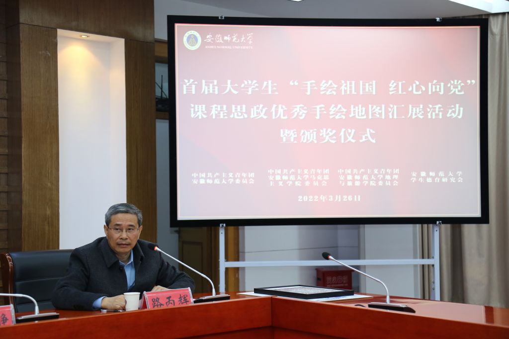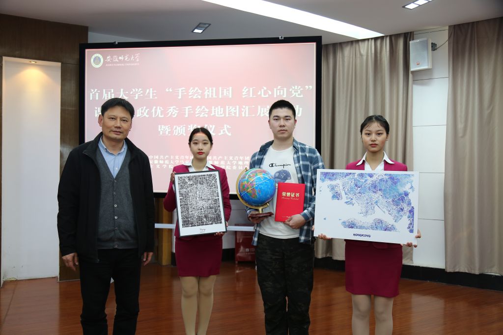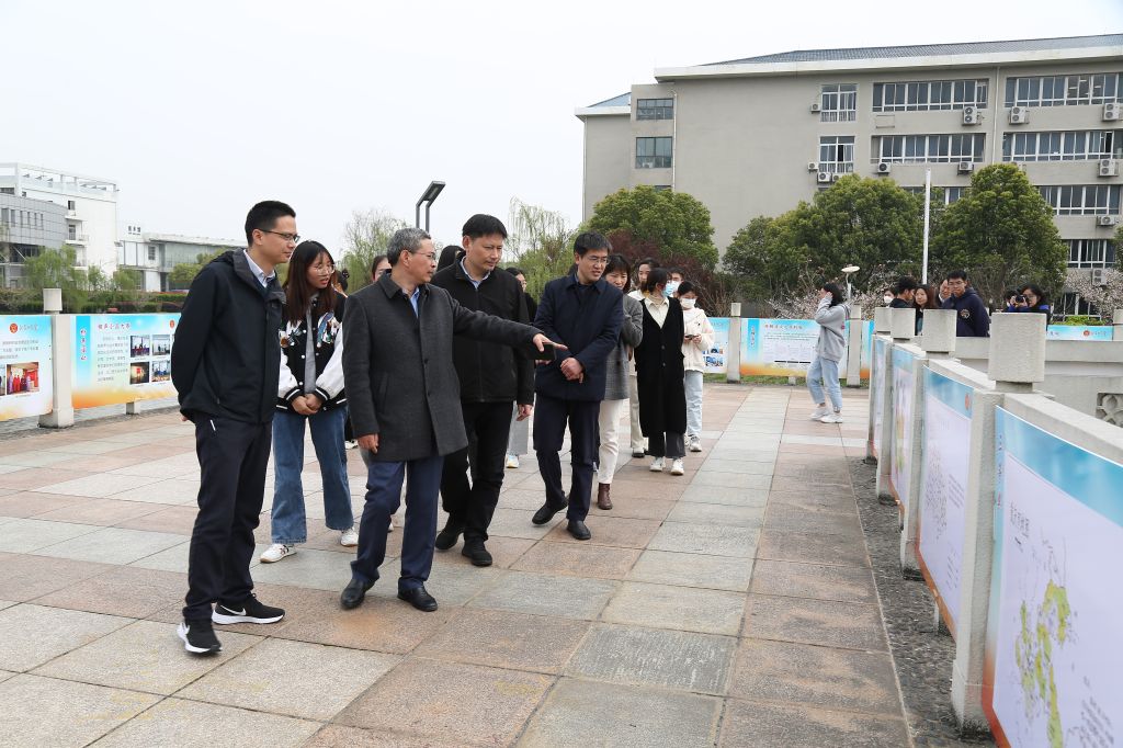 3月29日,校党委书记胡朝荣,学校办公室、宣传部、校团委、565net必赢客户端、德育研究会负责同志来到学校九曲桥旁,现场参观手绘地图获奖作品展览。40余幅作品迎着阳光一字排开,线条勾勒严谨,色彩丰富,绘制细致精美,既有省内的芜湖、六安等城市,也有省外的温州以及香港特别行政区等。现场,获奖学生代表向胡朝荣介绍了各自绘制作品的内容和初衷。胡朝荣边走边看,不时驻足仔细观察,在认真听取作品介绍后,胡朝荣对同学们绘制的地图给予了高度肯定。他指出,565net必赢客户端的同学们能够紧密结合专业实际,一笔一划手绘祖国各地地图,不仅展现了同学们扎实的专业功底,而且充分体现了同学们深厚的家国情怀。希望同学们再接再厉,矢志奋斗,将专业所学进一步凝练提升,切实把个人的理想追求融入党和国家事业之中,为实现中华民族伟大复兴的中国梦不断贡献青春力量。