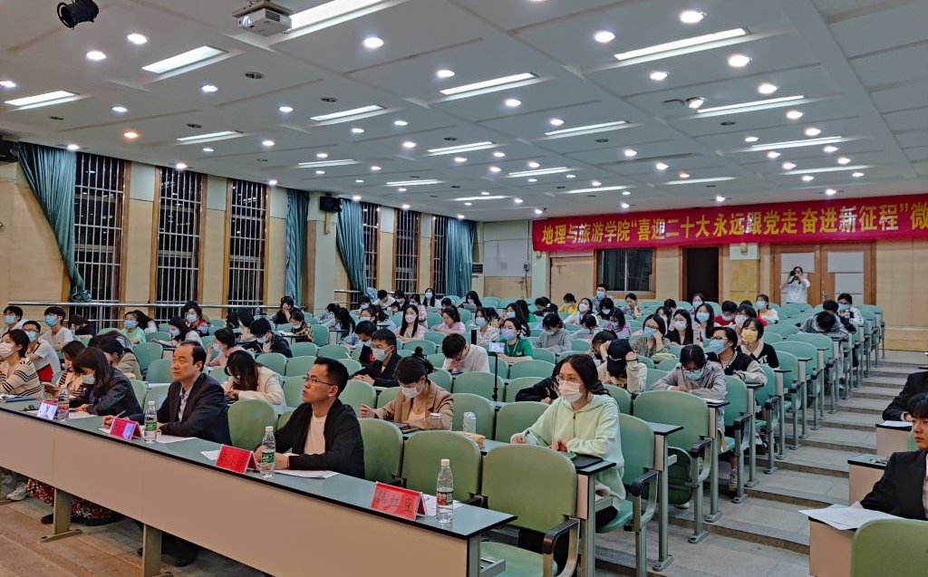 5月4日晚,565net必赢客户端于院实验楼101报告厅举行“喜迎二十大,永远跟党走,奋进新征程”微党课大赛,院党委副书记、纪委书记乔静,院纪副书记王美,地理第一本科生党支部书记齐小学,以及学院专兼职辅导员代表参加活动并担任评委,学院第12期学生党员培训班和第63期入党积极分子培训班学员代表现场观摩学习。