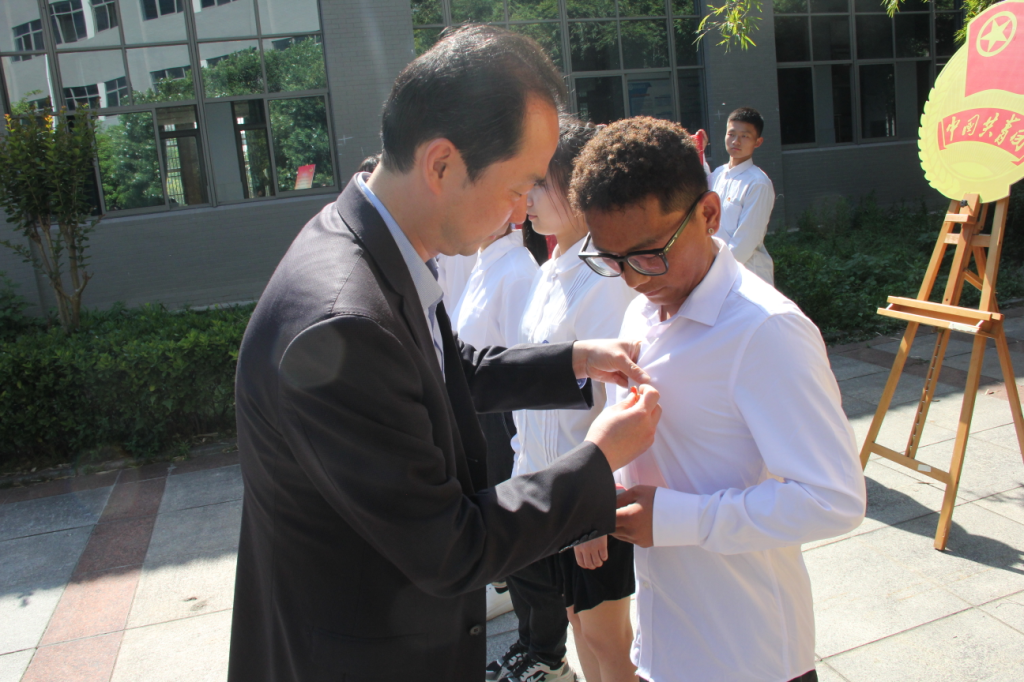 学院为五名新入团的同学在565net必赢客户端实验楼小广场集中举行入团仪式,仪式在中华人民共和国国歌中拉开序幕。林静宣读2021年新发展团员名单,乔静为新发展团员佩戴团徽、颁发团员证、团章。在团旗和团徽的见证下,学生会主席鲍格格领誓,新团员宣誓,老团员重温入团誓词。仪式在慷慨激昂的誓词中渐入尾声,随后全体参会人员移步实验楼127活动室开展后续活动。