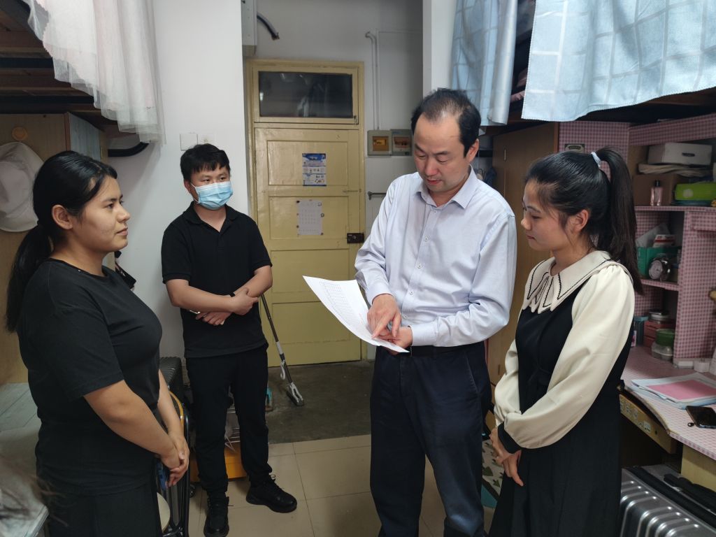 检查过程中,检查组全面检查了本科生、研究生宿舍晨午晚检、健康打卡、安全签到、因病缺勤(课)追踪等疫情防控要求落实情况,随机抽查了部分学生健康码、行程码,并叮嘱学生要牢固树立个人是疫情防控第一责任人的意识,按时进行核酸检测,倍加珍惜来之不易的疫情防控成果,理解支持属地和学校疫情防控政策。同时,针对检查过程中存在的安全隐患,检查组当场指出并指导学生进行整改,提醒学生随着气温逐渐升高,要规范宿舍用电,坚决杜绝私拉电线等行为,切实守住安全底线。此外,学院领导还利用专项检查的契机,特别关心、指导了毕业生求职就业、高年级考研推免、低年级学业规划等事宜,要求辅导员及时做好针对性指导、全方位服务,努力为学生成长成才保驾护航。