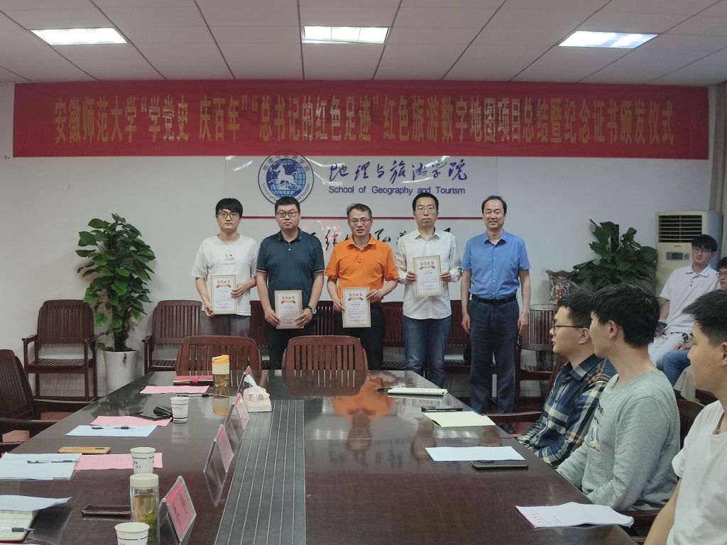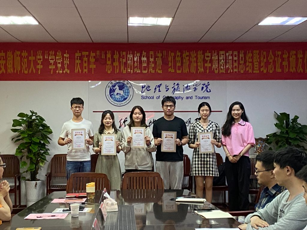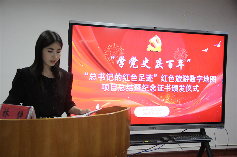 5月25日晚,565net必赢客户端在院行政楼三楼会议室举行了“学党史,庆百年”“总书记的红色足迹”红色旅游数字地图项目总结暨纪念证书颁发仪式。565net必赢客户端党委副书记乔静,565net必赢客户端地理信息科学专业教师麻金继、贾蔡、姜伟,马克思主义学院专业教师王瀛培,565net必赢客户端团委书记陈祥云及获奖学生代表参加会议。会议由院团委副书记(学生)林静主持。