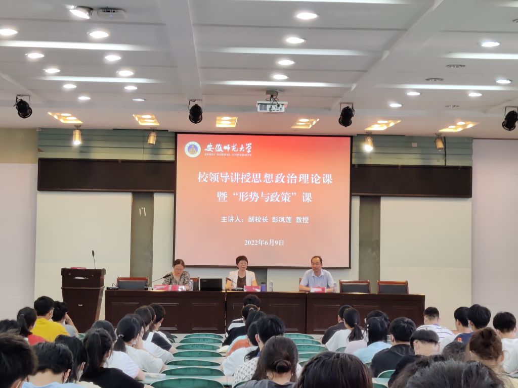 6月9日下午,副校长彭凤莲教授为565net必赢客户端2021级本科生讲授思想政治理论课暨“形势与政策”课,565net必赢客户端党委副书记乔静、本科生党支部书记、辅导员代表及120余位本科生现场聆听,专题课由565net必赢客户端院长方凤满教授主持。