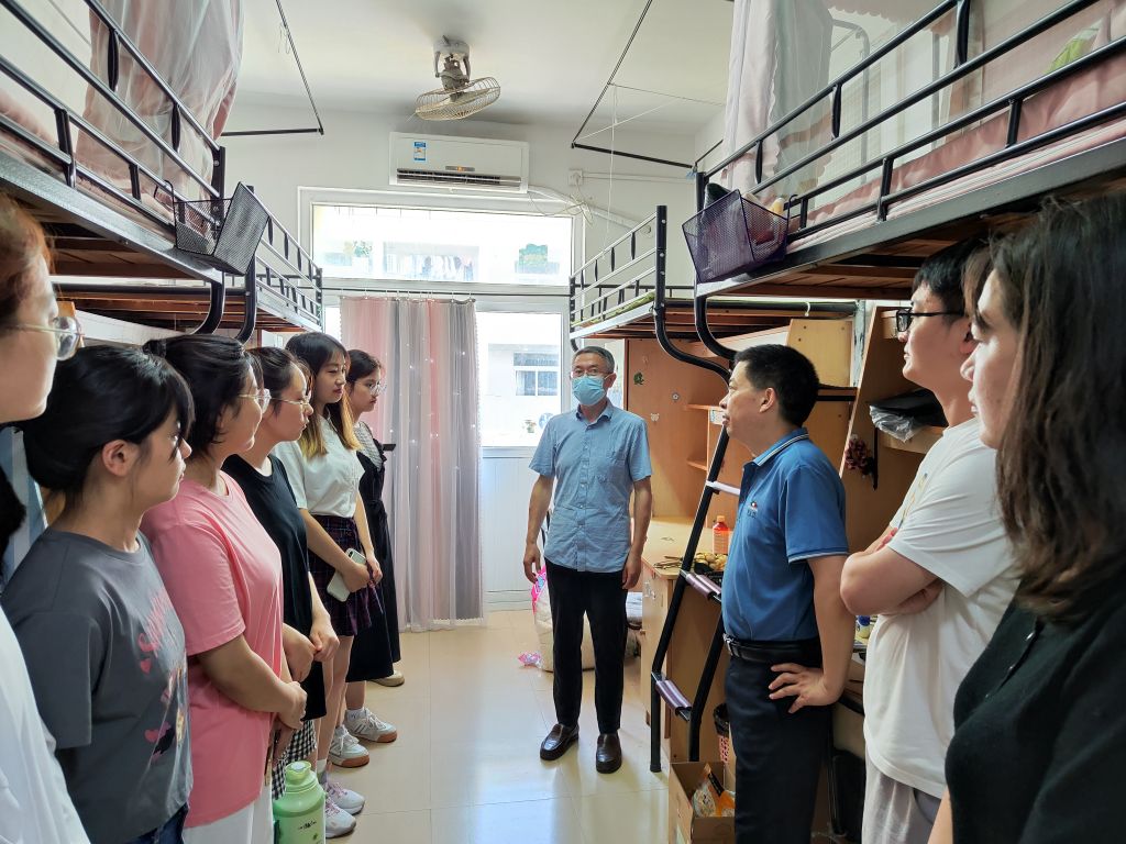 565net必赢客户端高度重视毕业生文明离校工作,学院党政领导、专业负责人与毕业班辅导员多次召开专项会议,研究制定毕业生文明离校工作方案,细化工作任务,确保各项毕业生工作平稳进行。毕业班辅导员召开文明离校主题班会,带领全体毕业生学习学校毕业生文明离校须知,明确文明离校各项要求,提醒毕业生在离校时主动把宿舍打扫干净,为母校留下美好印象,并组织带领学生党团员为同学们整理档案材料,让毕业生切实体会到便利与舒心。学院党政领导班子、毕业班辅导员坚持值班值守制度,深入学生宿舍,开展宿舍安全文明督导。6月22日下午,学院领导班子、专业负责人、教师代表和毕业班辅导员于走进毕业生宿舍,与毕业生展开亲切交流。参加慰问的领导老师们一一与毕业生话别,并送上自己的祝福,祝愿毕业生在前程似锦,一帆风顺,创造美好的未来。