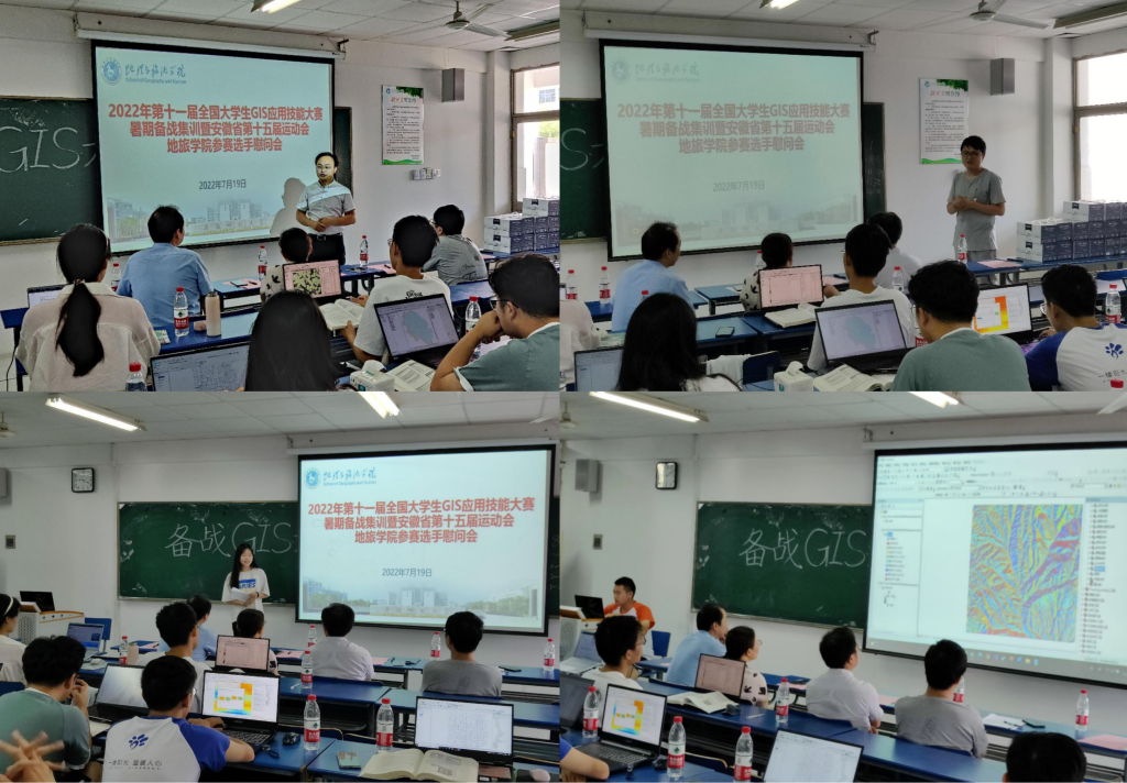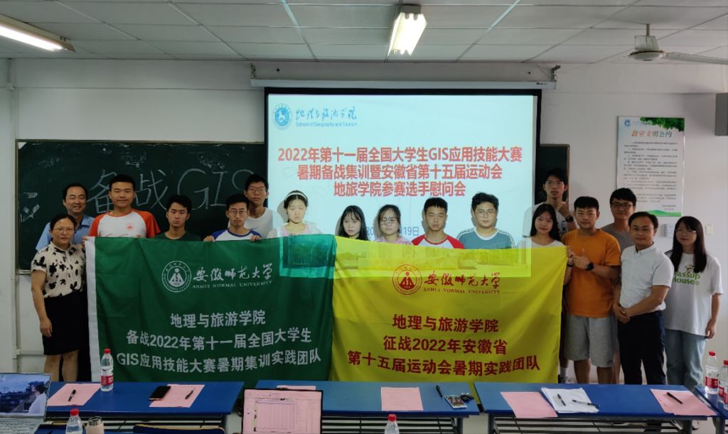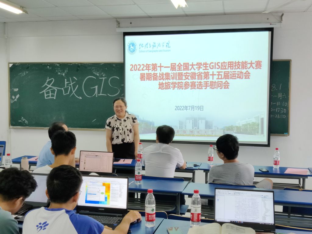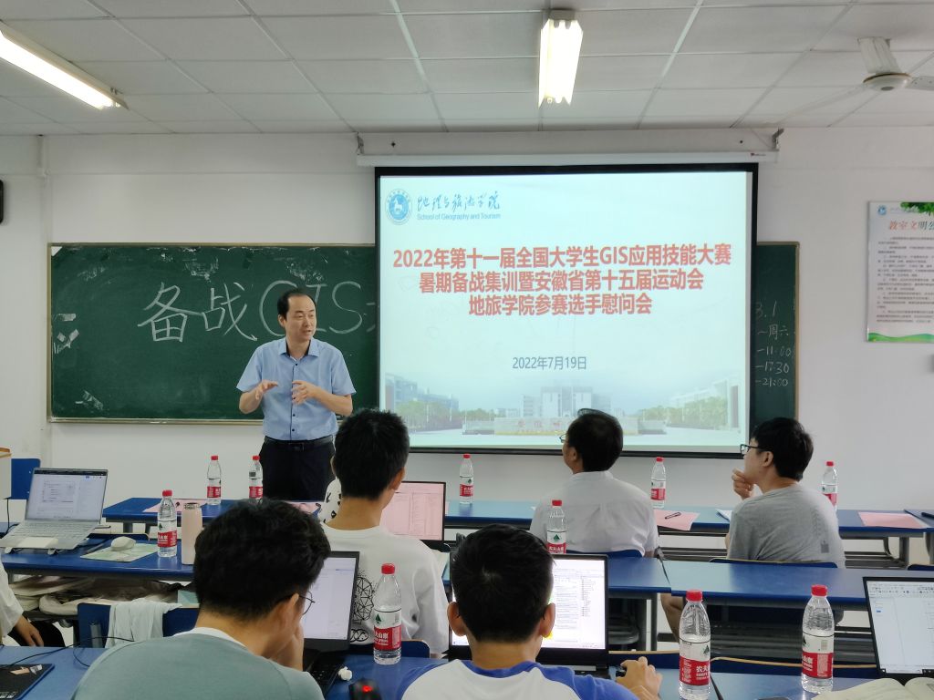 7月19日上午,565net必赢客户端在实验楼202教室召开2022年第十一届全国大学生GIS应用技能大赛暑期备战集训暨安徽省第十五届运动会参赛选手慰问会,学院院长方凤满、党委副书记乔静、地理信息科学专业负责人汪左、指导教师姜伟、辅导员代表以及全体暑期留校集训学生参会。