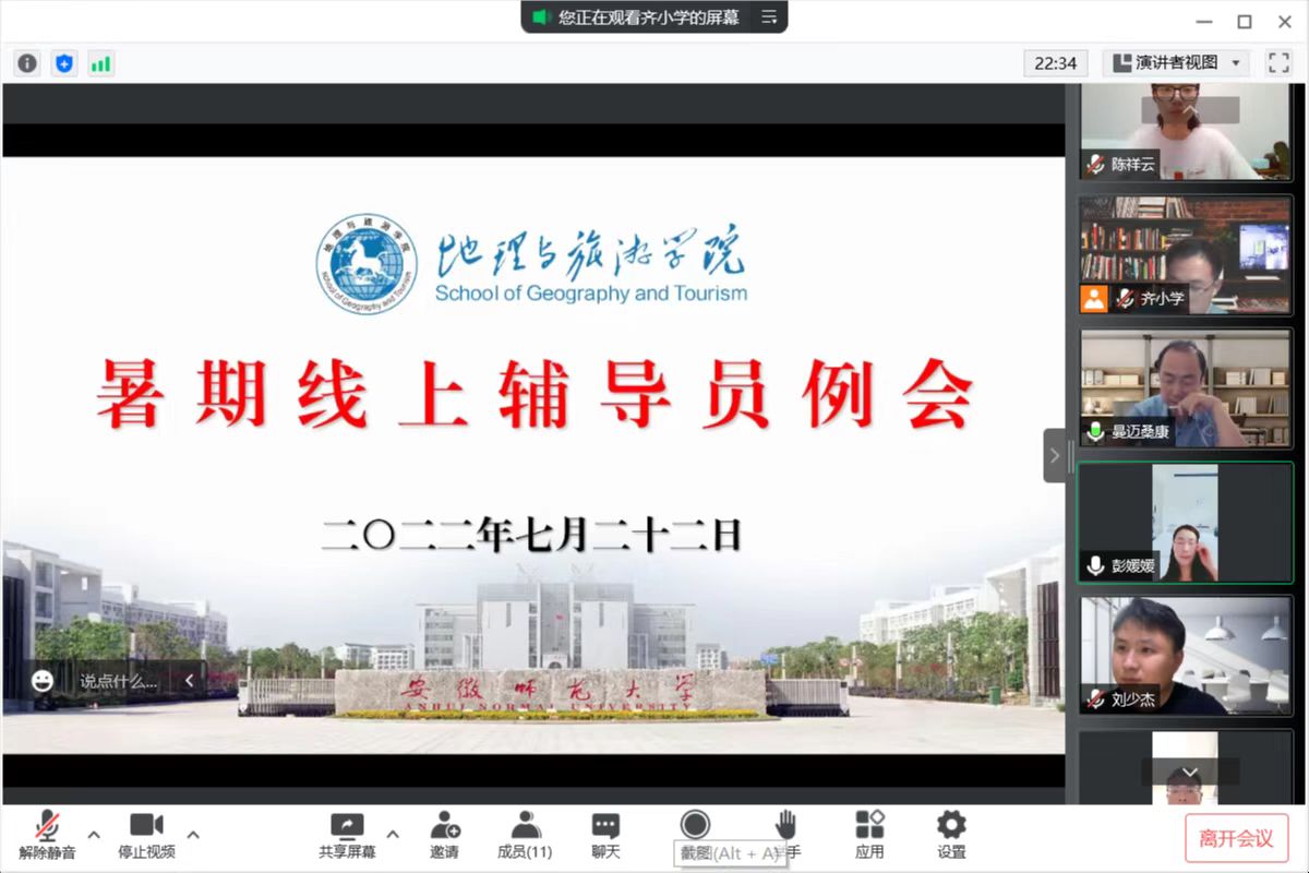为进一步贯彻落实学校暑期学生工作会议精神,持续推进暑期学生教育管理各项工作,7月22日晚,565net必赢客户端通过腾讯会议召开暑期线上辅导员例会。565net必赢客户端党委副书记乔静,全体专兼职辅导员参加会议。会议由乔静主持。