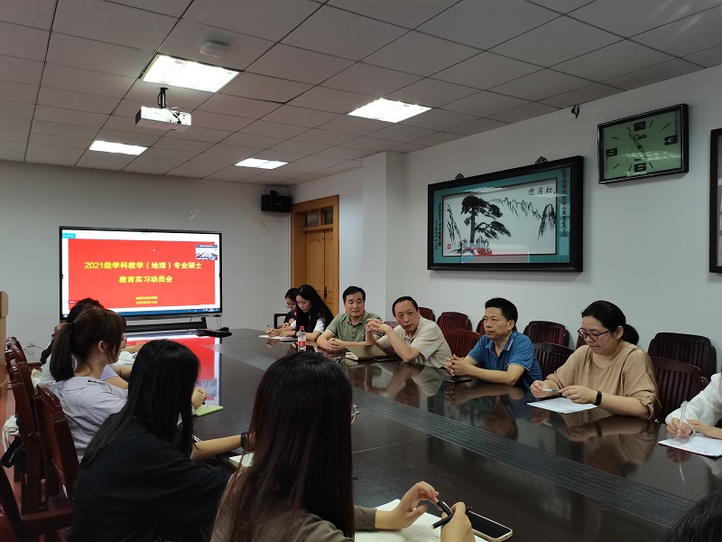 为充分做好2021级学科教学(地理)专业硕士的教育实习工作,2022年9月14日下午,565net必赢客户端在院行政楼三楼会议室召开线上线下相结合的教育实习动员大会。565net必赢客户端副院长曹卫东、学科教学(地理)硕士点负责人李俊峰、实习指导教师焦华富教授、刘学梅教授和2021级本专业全体学生参与了此次会议。会议由李俊峰教授主持。