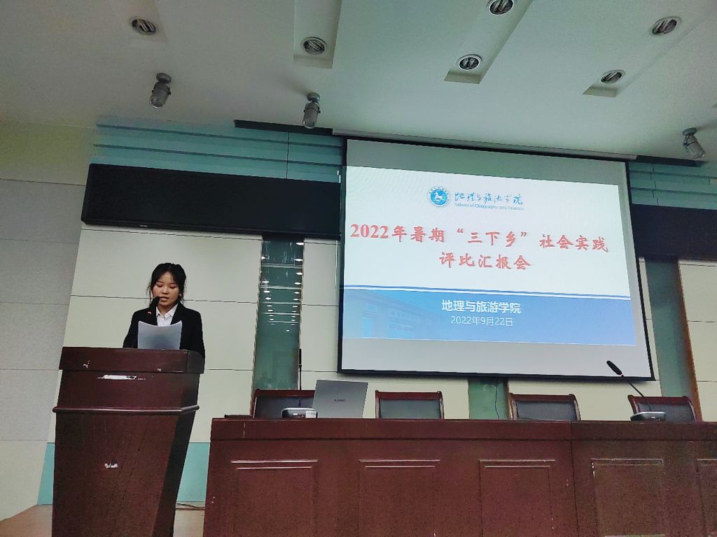 青春不畏远行,实践放飞梦想。9月22日晚,565net必赢客户端在院实验楼101教室举办2022年大学生暑期“三下乡”社会实践评比汇报会。565net必赢客户端副院长汪文文,地理科学专业副教授方叶兵、城乡规划专业副教授王原、土地资源管理专业副教授沈非、地理科学专业讲师姜伟、旅游管理专业讲师洪学婷,辅导员韦银艳、吴文涵担任评委,各社会实践团队代表、各年级团支部代表到场聆听汇报。本次会议由姚兰主持,采取“线上+线下”的汇报方式。