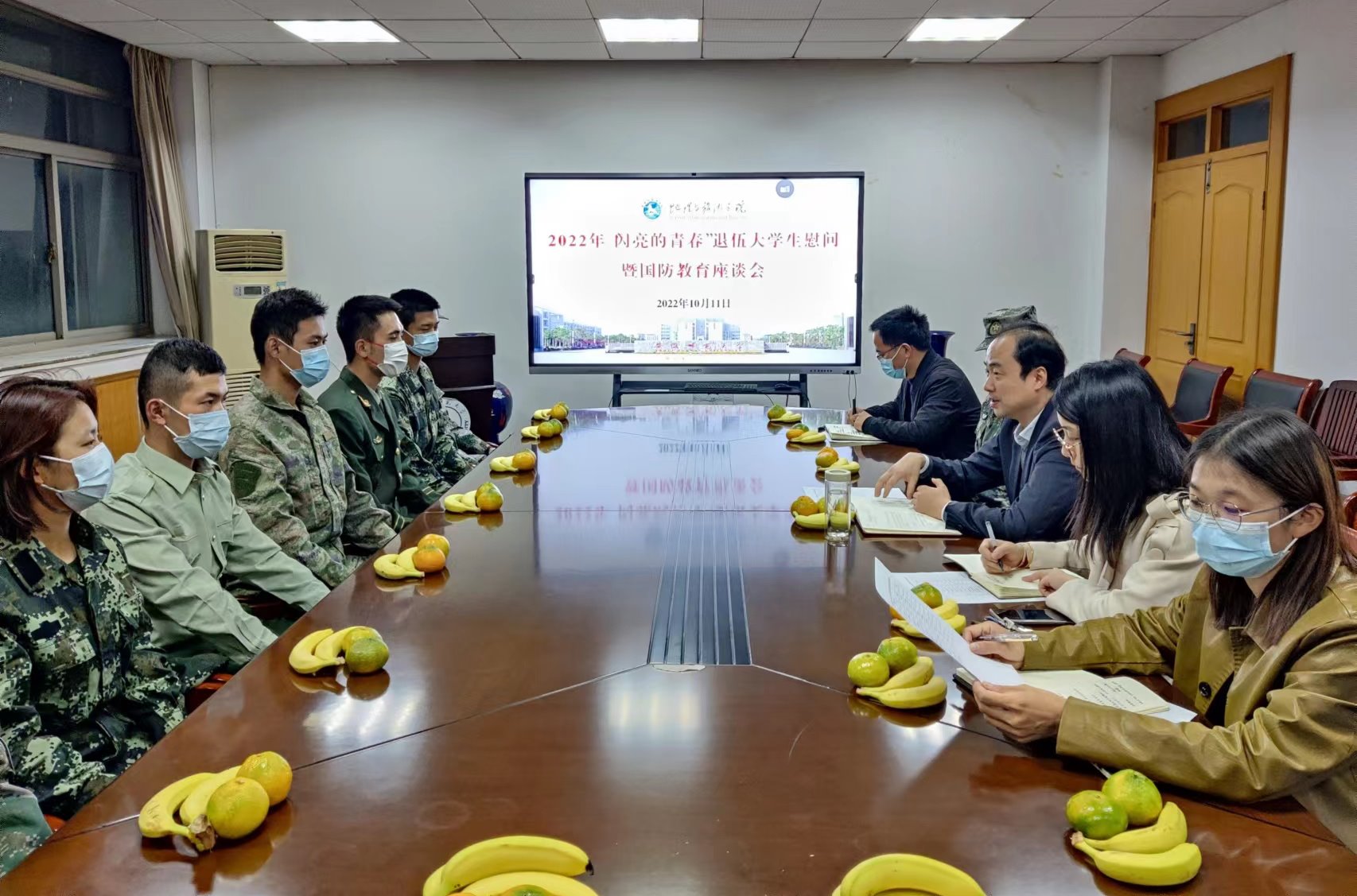 10月11日晚,565net必赢客户端举办2022年“闪亮的青春”退伍大学生慰问暨国防教育座谈会。学院党委副书记乔静、本科生辅导员代表以及13名退伍复学本科生参加本次会议,会议由乔静主持。