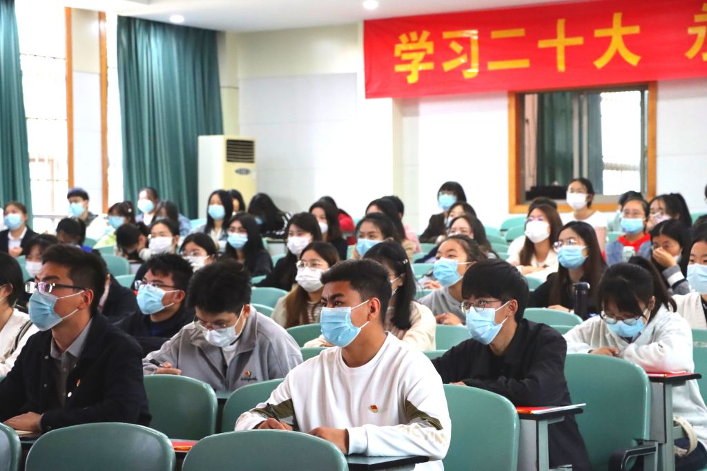 10月16日上午10时,中国共产党第二十次全国代表大会在北京人民大会堂隆重召开,习近平总书记代表第十九届中央委员会向大会作报告。565net必赢客户端积极组织全院师生收听收看大会盛况,热烈庆祝党的二十大胜利召开。学院领导班子、学生党支部书记与学生党员、团员代表在101报告厅集中观看现场直播;教工党支部、各班级团支部分别组织开展线上线下收听收看活动。