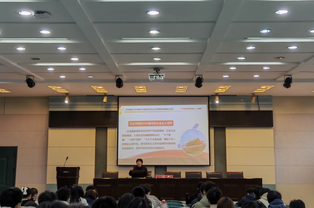 专题课上,彭凤莲还结合自己求学工作的亲身经历,勉励同学们应当坚持文化自信,把深入学习贯彻习近平新时代中国特色社会主义思想同中国具体实际相结合,推动中华优秀传统文化创造性转化、创新性发展,希望同学们从理论必然、历史必然、现实必然、实践必然四大维度,深刻领悟“两个确立”的决定性意义,进一步增强“四个意识”、坚定“四个自信”、做到“两个维护”,深入领会和贯彻落实党的二十大的精神实质、核心要义,把个人小我主动融入到党和国家建设的伟大事业之中,坚定不移听党话、跟党走,立志做有理想、敢担当、能吃苦、肯奋斗的新时代好青年,让青春在全面建设社会主义现代化国家的火热实践中绽放绚丽之花。