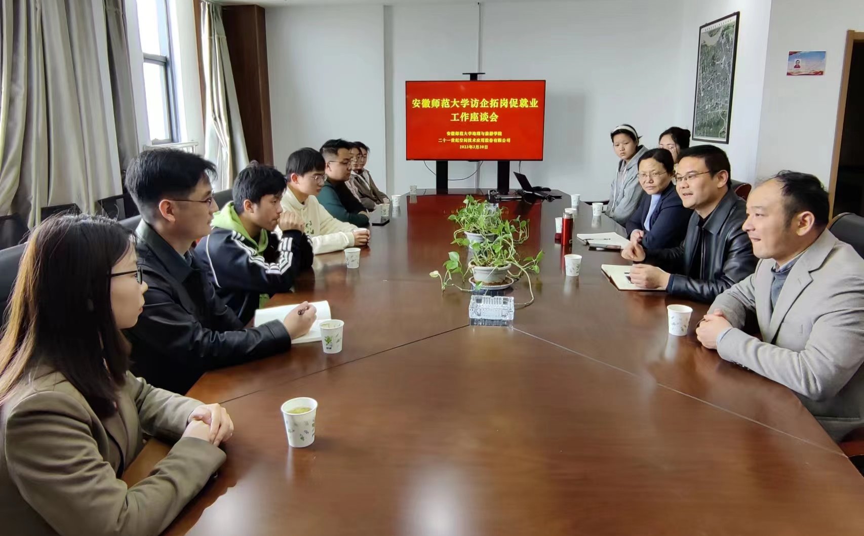 为深入贯彻落实教育部、省教育厅关于访企拓岗促就业工作要求,助力毕业生高质量充分就业,3月30日,地旅学院院长方凤满、党委副书记付勇、地理信息科学专业负责人宋立生以及毕业班辅导员代表等一行前往淮南市二十一世纪(安徽)空间技术应用有限公司开展访企拓岗促就业行动。