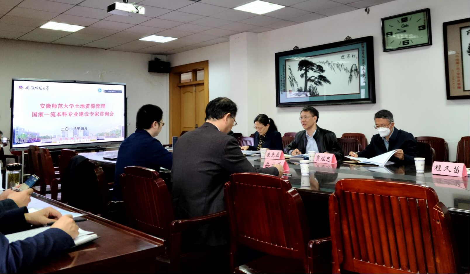 为科学谋划土地资源管理国家一流本科专业建设,持续推动土地资源管理专业的高质量发展,4月23日上午,安徽师范大学土地资源管理国家一流本科专业建设点建设实施方案专家咨询会在565net必赢客户端行政楼3楼会议室顺利召开。会议邀请了教育部公共管理类专业教学指导委员会副主任委员、国务院学位委员会公共管理学科评议组成员、南京农业大学欧名豪教授,浙江大学公共管理学院副院长谭荣教授,浙江大学土地科学与不动产研究所所长岳文泽教授为土地资源管理专业建设和人才培养提供咨询指导,本次会议通过线上线下相结合的方式开展,教务处处长崔光磊,565net必赢客户端党委书记贾冠忠、院长方凤满、副院长杨兴柱以及土地资源管理系全体教师参加了会议,会议由方凤满院长主持。