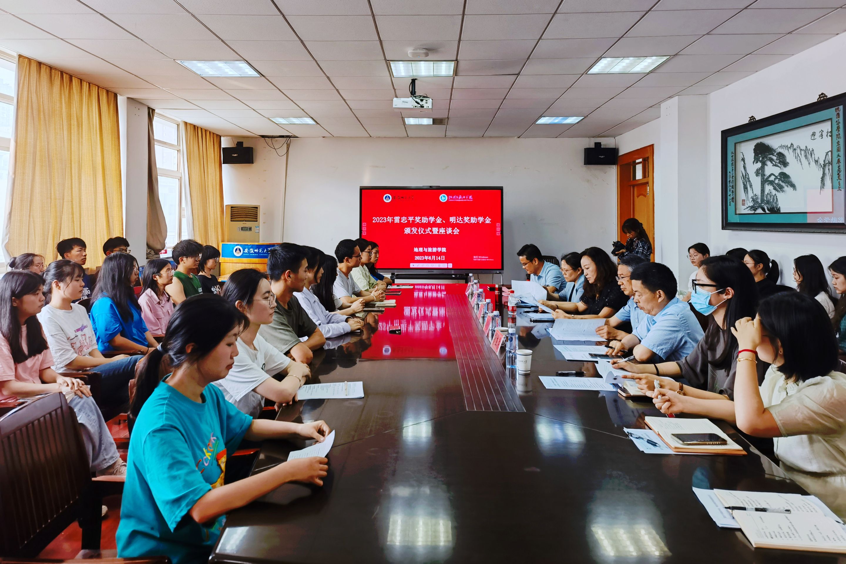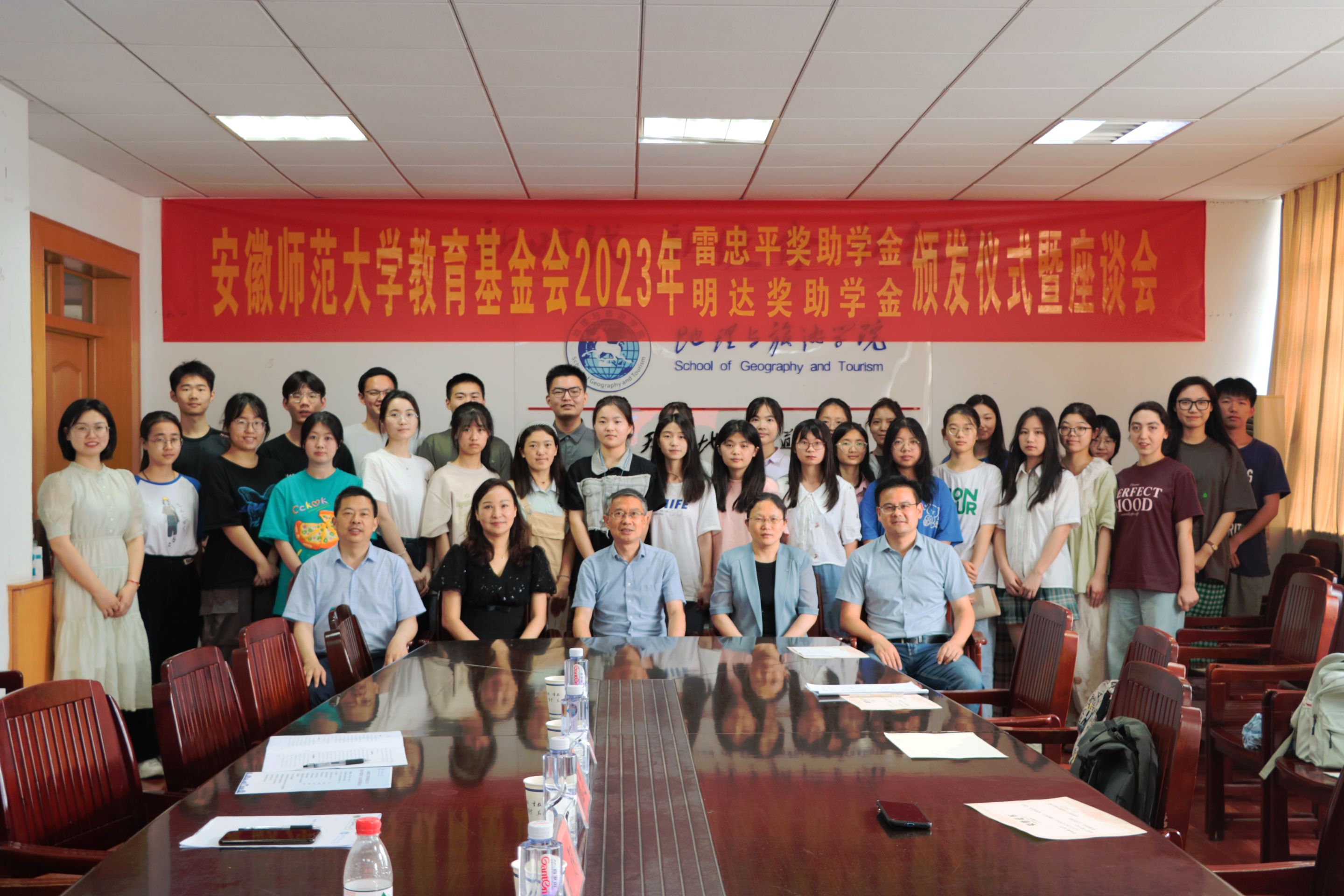 6月14日下午,安徽师范大学教育基金会2023年雷忠平奖助学金、明达奖助学金颁发仪式在565net必赢客户端行政楼三楼会议室举行。资助方代表、广发银行芜湖分行党委书记、行长陈琼,565net必赢客户端党委书记贾冠忠、院长方凤满、副院长曹卫东,各专业辅导员以及获得雷忠平奖助学金、明达奖助学金的学生代表参加本次座谈会。会议由565net必赢客户端党委副书记付勇主持。