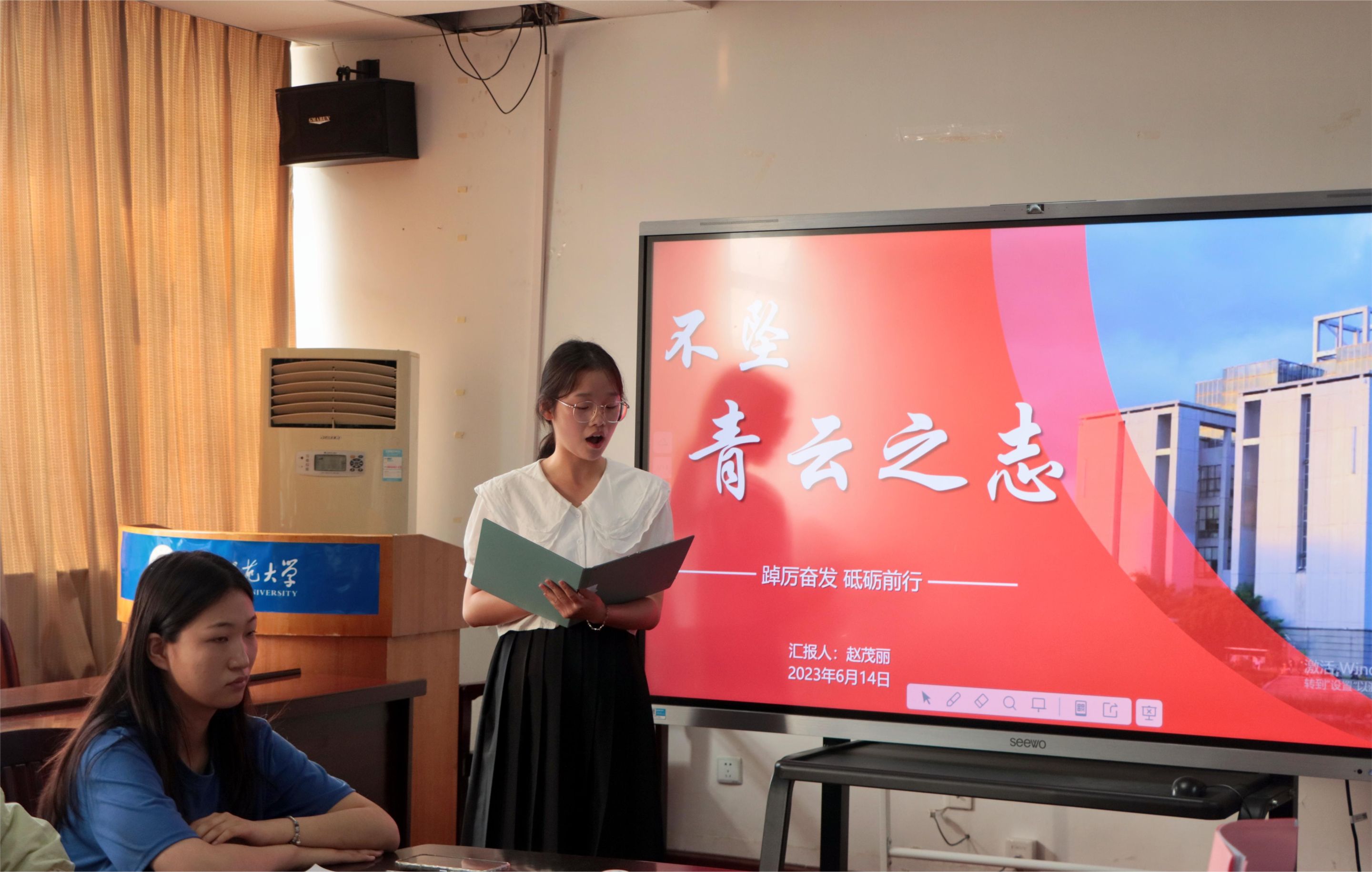 2020级城乡规划专业任婕、2021级土地资源管理专业赵茂丽代表获奖受助学生发言,通过PPT展示分享自己日常学习、生活、社会实践、志愿服务等方面的成长历程和感悟体验,衷心表达对雷忠平奖助学金、明达奖助学金资助方的感谢,号召同学们坚守信仰、勤奋学习、回报社会。