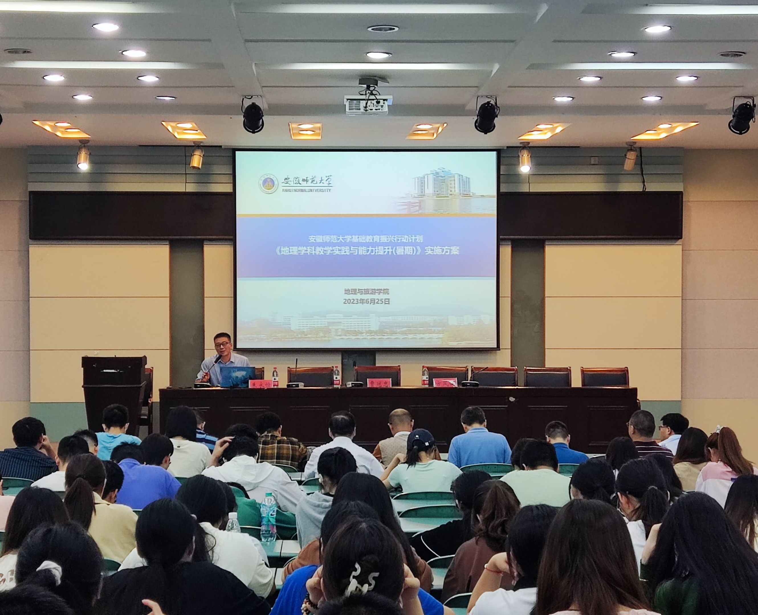会议伊始,方风满介绍了安徽师范大学“基础教育振兴行动计划”的背景和内容,重点强调了开展暑期小学期对增强学生职业认同、贯彻课程思政教育、提升教学实践能力等方面的重要意义。她希望同学们在学习过程中要学会欣赏、学会模仿、学会超越、学会创造,努力提升教学能力。
