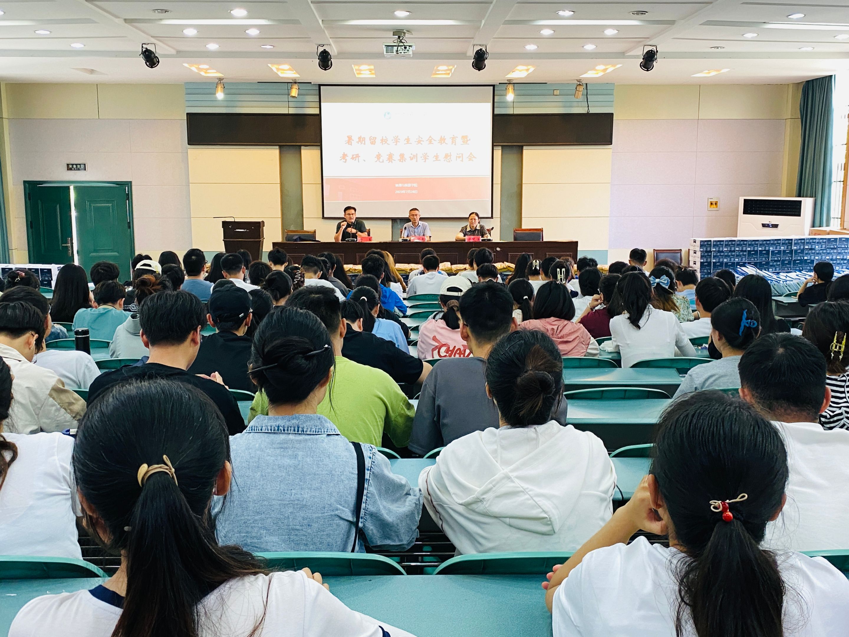 7月26日上午,565net必赢客户端在实验楼101报告厅举行暑期留校学生安全教育暨2024届考研、竞赛集训学生慰问会。565net必赢客户端党委书记贾冠忠、院长方凤满、院党委副书记付勇、2020级本科生辅导员以及全体暑期留校考研、竞赛集训学生参会。