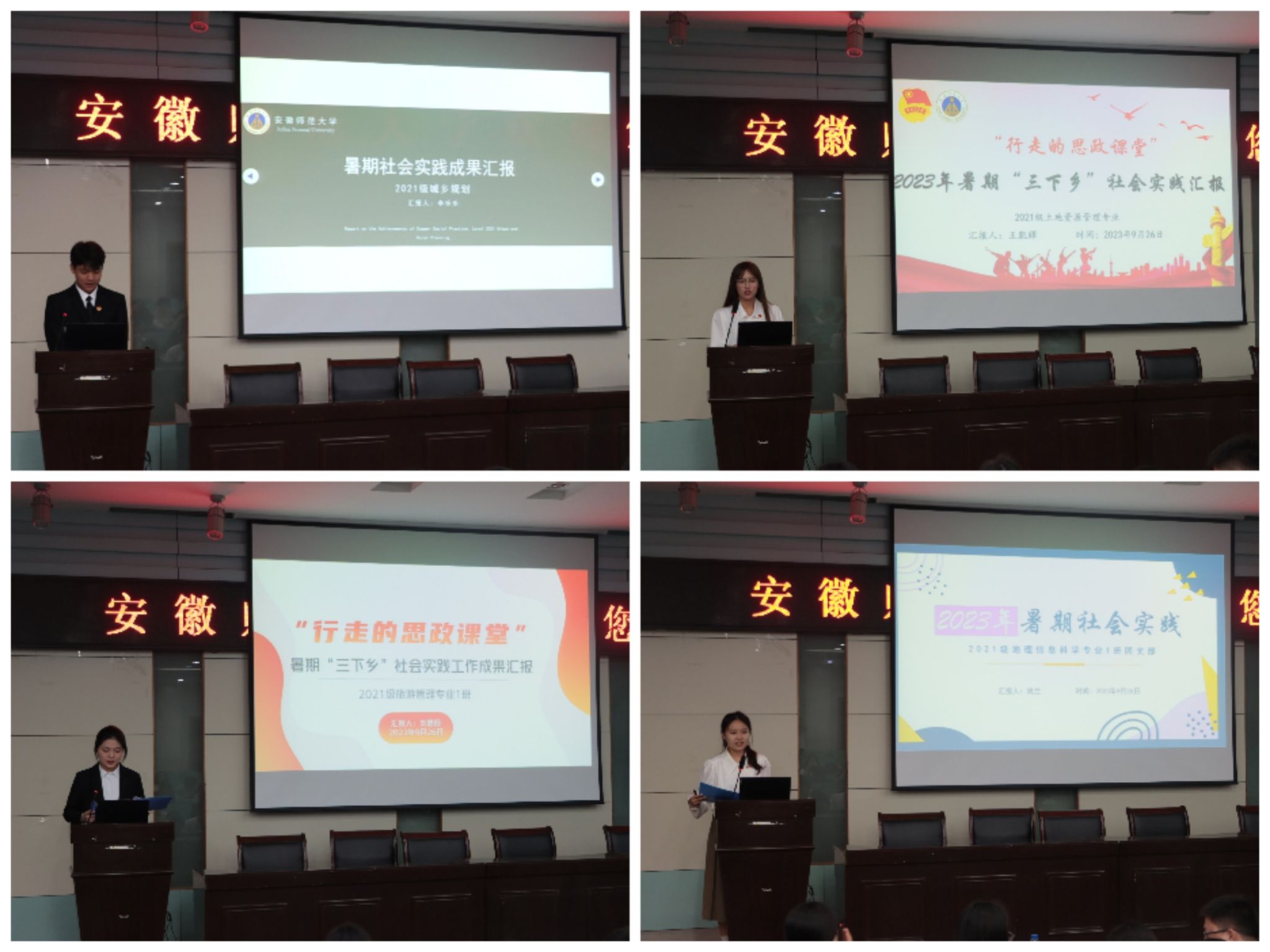 汇报开始,徐瑾介绍了此次汇报会的整体安排、各团队汇报的注意事项及评委打分规则。会上12支社会实践团队和9个班级团支部队伍以PPT汇报的形式,依次围绕开展情况、实践过程、实践成果等方面,生动形象地讲述了同学们的暑期社会实践故事,获得评委老师与观众的阵阵掌声。