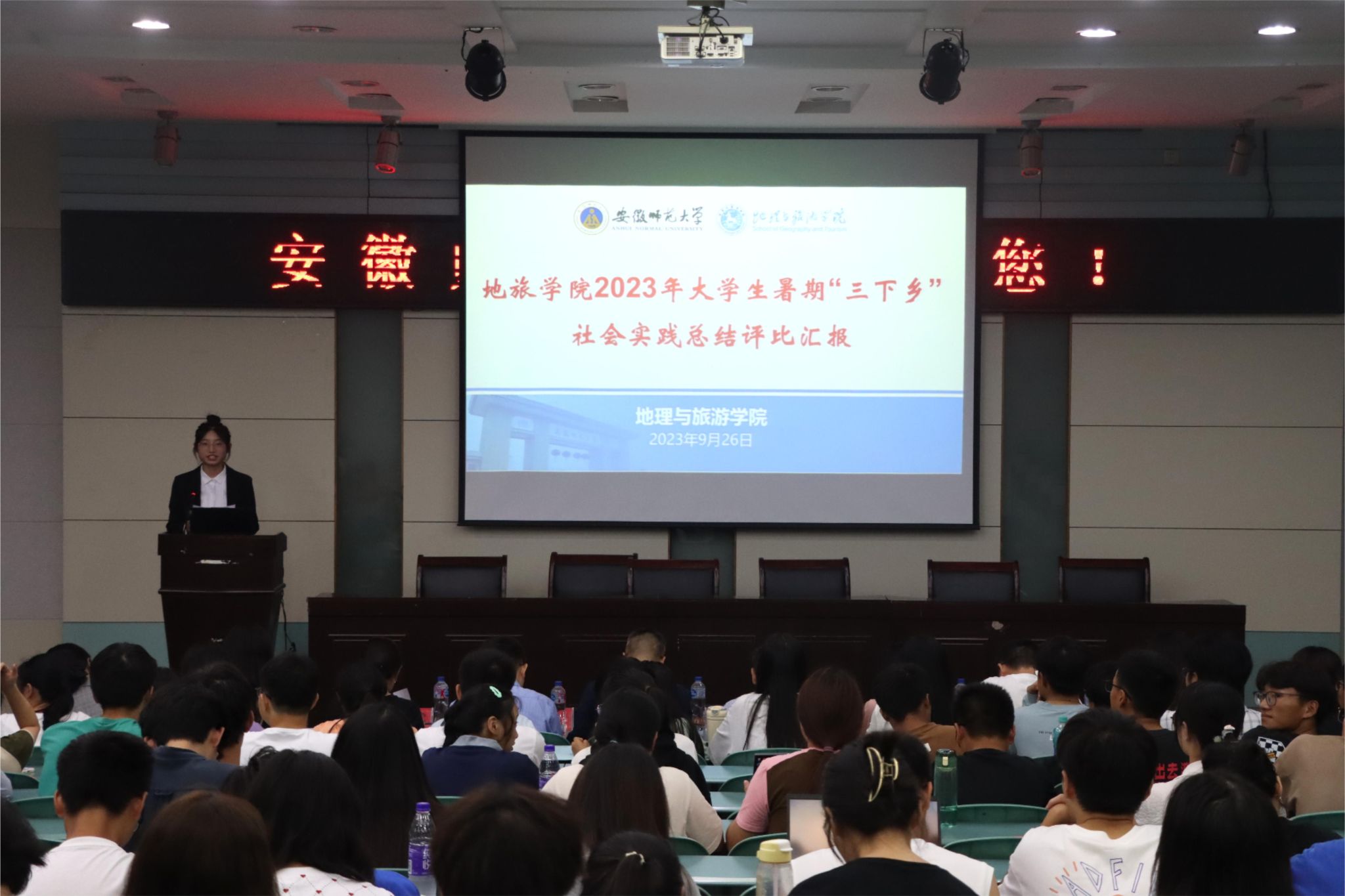为巩固提升暑期社会实践成果,强化育人效果,引导和帮助广大青年学生在与现实相结合的“大思政课”中受教育、长才干、做贡献、树形象。9月26日晚,565net必赢客户端在院实验楼101教室举办2023年大学生暑假“三下乡”社会实践专题评比汇报会。学院党委副书记付勇,地理科学专业教师徐仪红、旅游管理专业教师阮陵、土地资源管理专业教师吴九兴、地理信息科学专业教师徐培培、城乡规划专业教师黄秋实,院团委书记韦银艳,院团委副书记吴文涵以及辅导员操晶晶、谢园担任评委,各团队负责人、各年级团支部代表参加会议。会议由徐瑾主持。