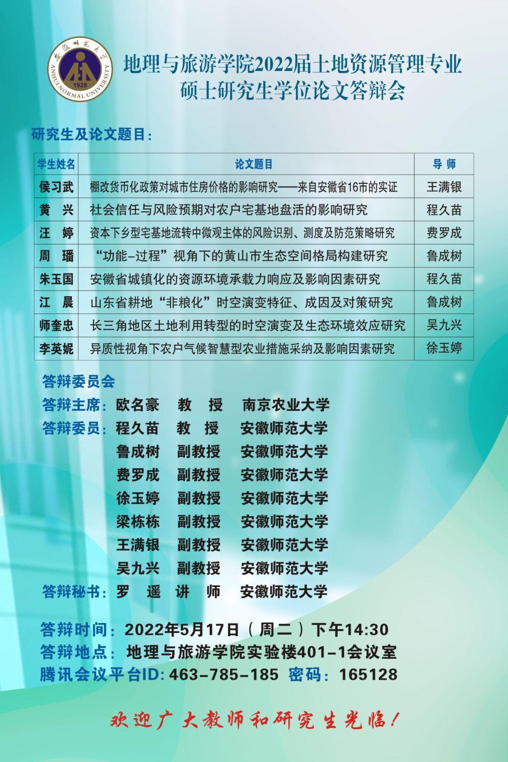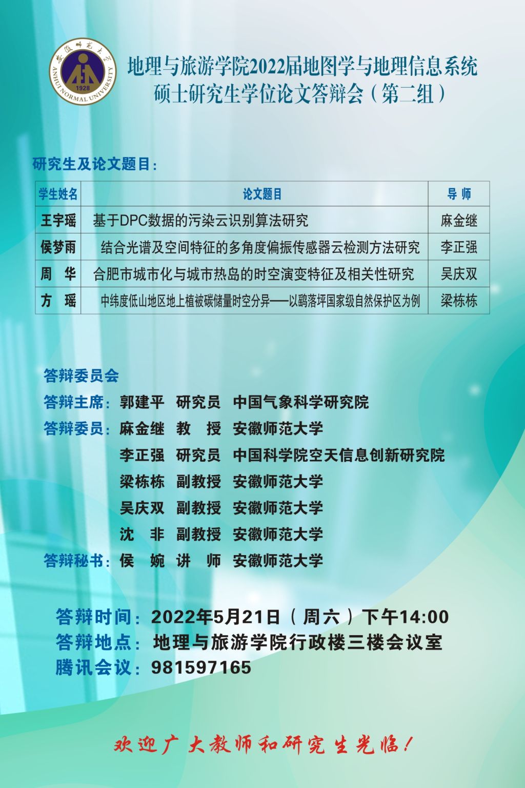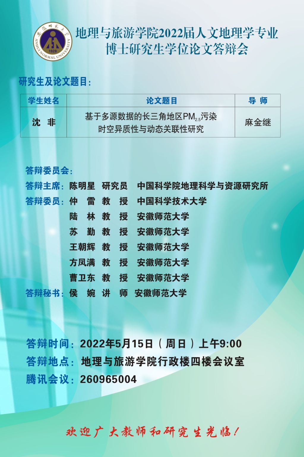 565net必赢客户端2022届博士、硕士研究生学位论文答辩信息公告 (第一批)