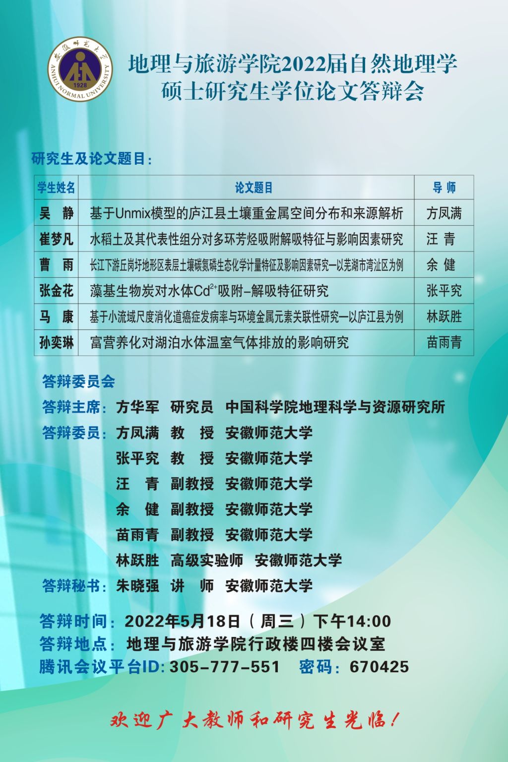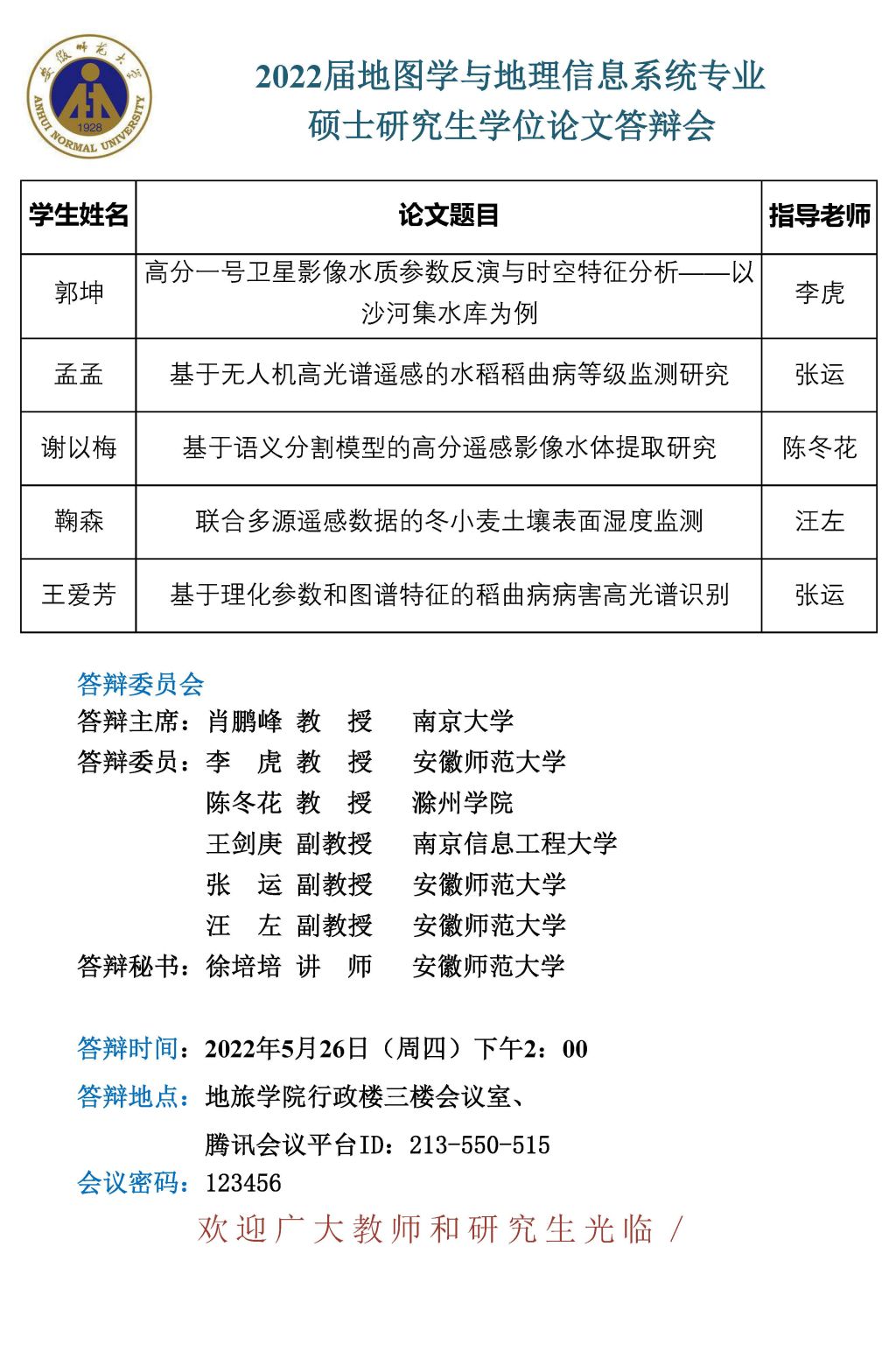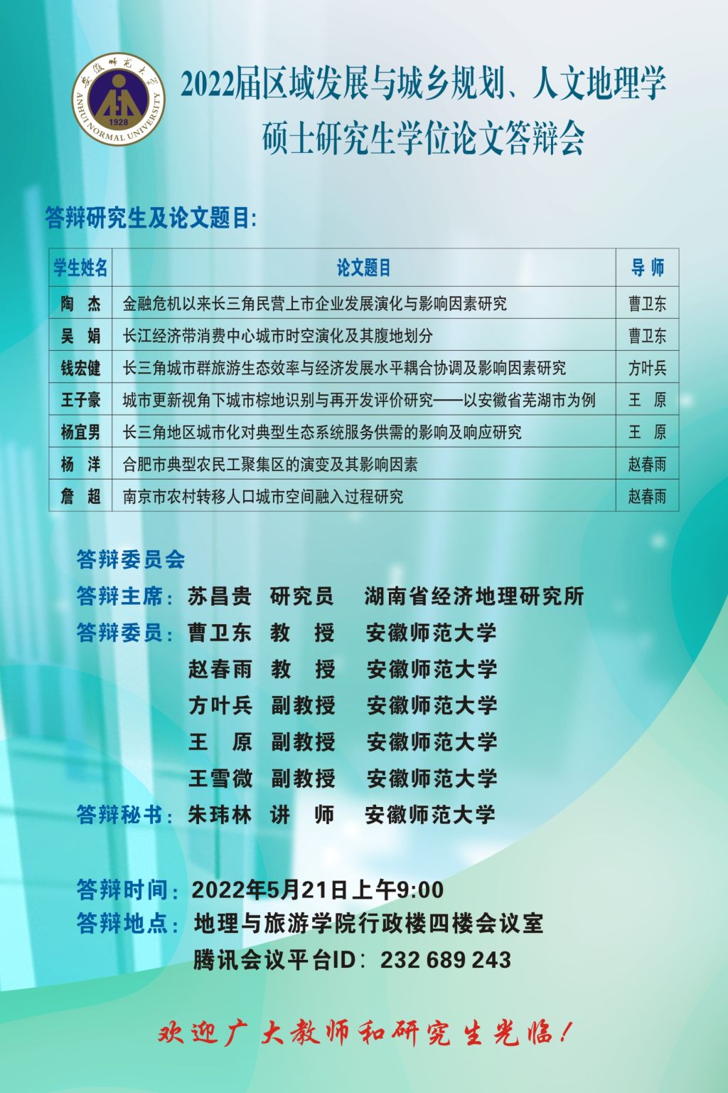 565net必赢客户端2022届博士、硕士研究生学位论文答辩信息公告 (第一批)
