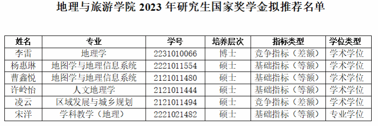 根据《安徽省财政厅 安徽省教育厅 安徽省人力资源和社会保障厅 安徽省退役军人事务厅 安徽省军区动员局关于印发<安徽省学生资助资金管理实施办法〉的通知》(皖财教〔2023〕508号)和《安徽省教育厅关于做好2023-2024学年学生资助工作的通知》(皖教秘〔2023〕240号)精神和要求,结合安徽师范大学《关于做好我校2023年研究生国家奖学金评审工作的通知》(校研字〔2023〕19号)等文件精神和要求,学院在坚持公开、公正、公平原则的基础上,通过学生个人申请、班级评议、学院评审委员会评审,现确定学院2023年研究生国家奖学金拟推荐人选名单。现公示如下:
