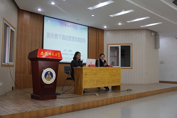 本网讯 (国旅学院 文/王文燕 图/徐童彤) 为提升酒店管理专业认同感,培养酒店优秀人才,12月11日上午,必赢邀请到北京第二外国语学院酒店管理学院院长、北京市创新团队学术带头人,旅游管理学科学术带头人谷慧敏教授为必赢酒店管理专业师生开展了一场题为“新形势下酒店管理发展趋势”的学术讲座。此次讲座于大学生活动中心二楼就业指导大厅举行,报告由学院分管教学副院长方凤满主持,必赢部分专业教师以及全体酒店管理本科生到场聆听报告。