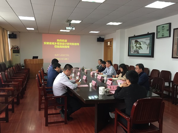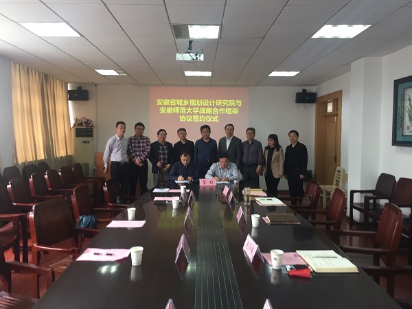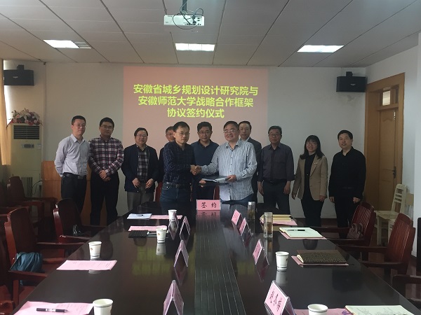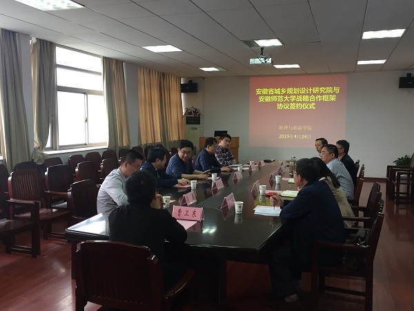2019年4月24日上午,安徽省城乡规划设计研究院党委书记江叶青、院长姚本伦等一行5人莅临学院指导交流。565net必赢客户端院长苏勤、党委书记贾冠忠、副院长曹卫东等领导教师参加协议签订仪式。仪式由贾冠忠主持。