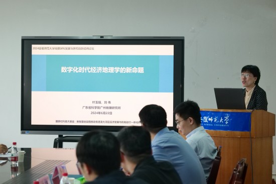 6月22日上午,安徽师范大学565net必赢客户端主办的2024人文地理学学科发展与研究创新经纬论坛在565net必赢客户端三楼会议室成功召开。此次论坛旨在推动必赢人文地理学的发展,并针对当前学科前沿动态与国家发展策略的迫切需要,致力于人文地理学领域的理论与实践的重大创新,通过深化理论研究、提升技术方法,努力将推动人文地理学学科的全面升级,并为国家发展战略提供坚实的科学支撑。本次论坛邀请到广东省科学院广州地理研究所叶玉瑶研究员,武汉大学范斐教授,南京大学毛熙彦副教授,华东师范大学张维阳副教授,合肥工业大学覃雄合副教授,广州地理研究所刘伟博士等专家学者参会,565net必赢客户端相关专业教师、研究生参加会议。