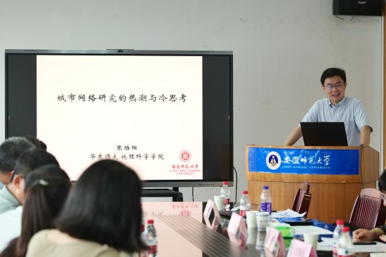 本次会议由565net必赢客户端副院长曹卫东教授主持开幕式,曹卫东教授首先介绍了安徽师范大学的办学历史以及565net必赢客户端的概况,并向出席本次学术论坛的各位专家学者表示热烈欢迎。在随后的专家报告环节,范斐教授做了主题为《创新地理学的理论方法与研究进展》的报告,旨在探究创新地理学的发展现状,并对创新地理学未来发展进行思考。毛熙彦副教授做了主题为《多尺度视角下的环境产品贸易地理格局演变及其效应》的报告以对环境产品贸易地理格局进行探究。叶玉瑶研究员则从学科发展角度做了《数字化时代人文地理学的新命题》的报告,对人文地理学在数字化时代的发展可能进行了探究。张维阳副教授则对城市网络研究现状进行了反思,并做了《城市网络研究的热潮与冷思考》的报告。