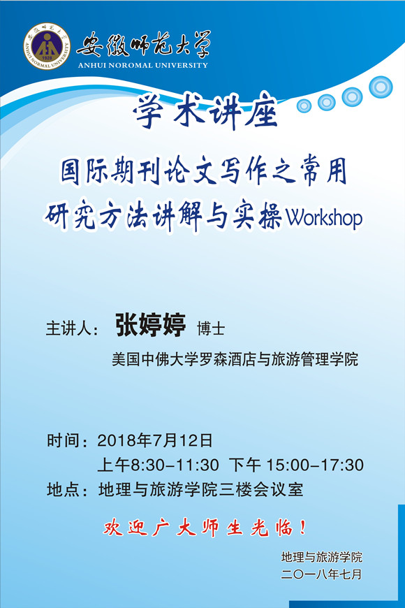 学术报告:国际期刊论文写作之常用研究方法讲解与实操 Workshop