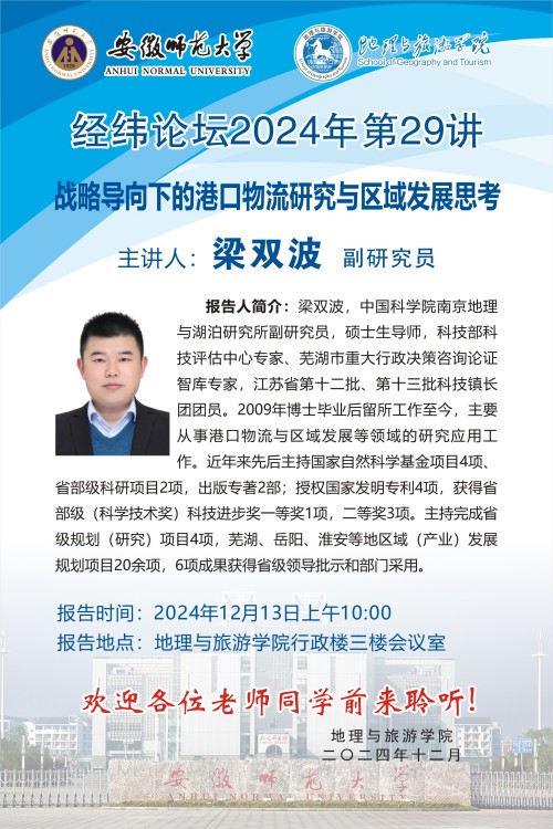 【学术预告】经纬论坛第61讲:战略导向下的港口物流研究与区域发展思考