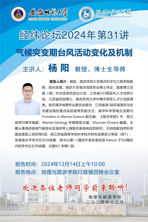 【学术预告】经纬论坛第63讲:气候突变期台风活动变化及机制