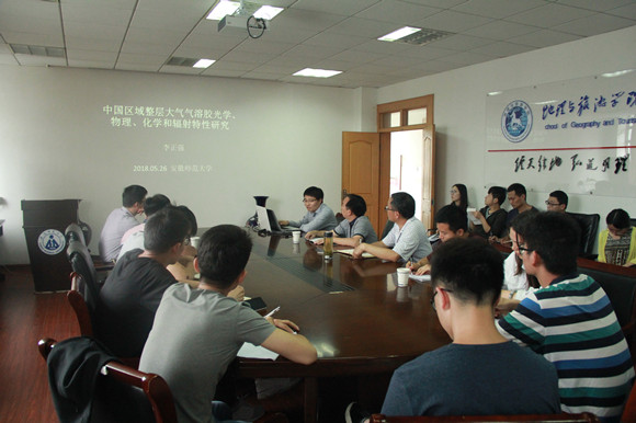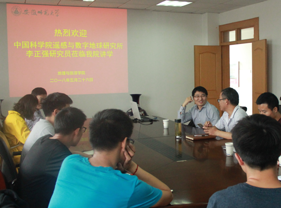 讲座由现象到本质、由背景到应用,并基于地理学原理深入介绍了中国整层大气气溶胶的光学、物理、化学和辐射特性,开阔了师生们的学术视野。会后,李正强与在场的师生们还围绕着相关学术问题进行了深入的交流与讨论。