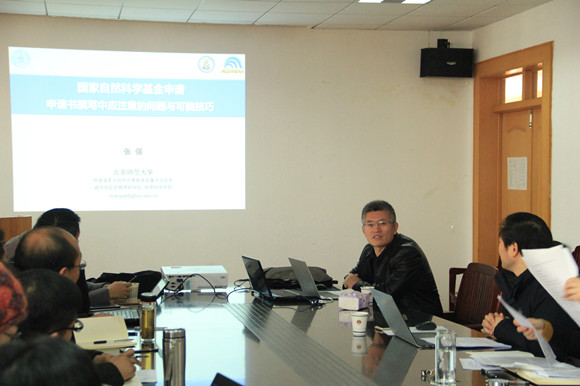 1月11日上午,校特聘教授、北师大张强教授,科研处自然科学管理科汪小丽老师应邀来必赢就2018年度国家自然科学基金项目申报工作进行交流指导。学院部分领导、符合基金申报条件的教师参加了申报辅导会。