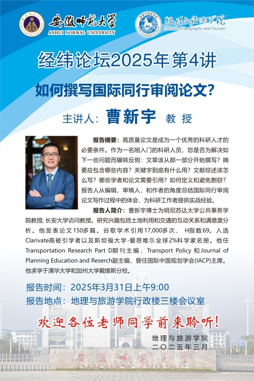 【学术预告】经纬论坛第70讲:如何撰写国际同行审阅论文?