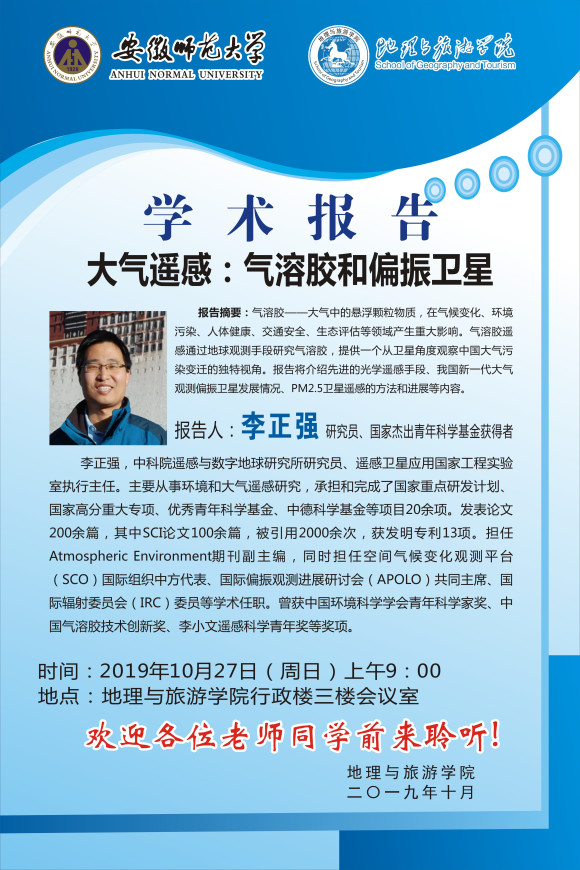 【学术预告】学术报告:大气遥感:气溶胶和偏振卫星