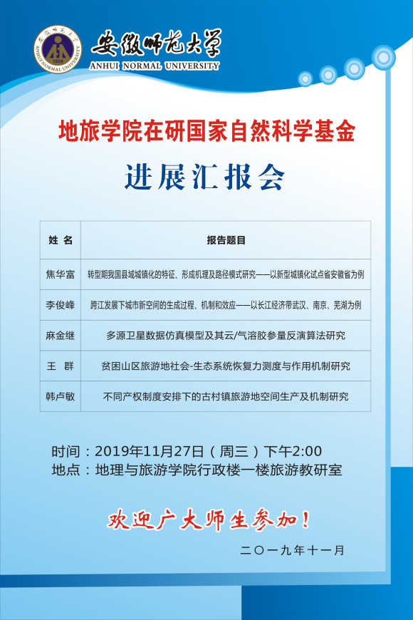 【学术预告】565net必赢客户端在研国家自然科学基金项目进展汇报会