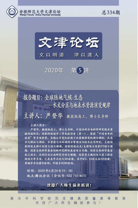 【学术预告】严登华:全球陆地气候-生态-水文分区与地表水资源演变规律