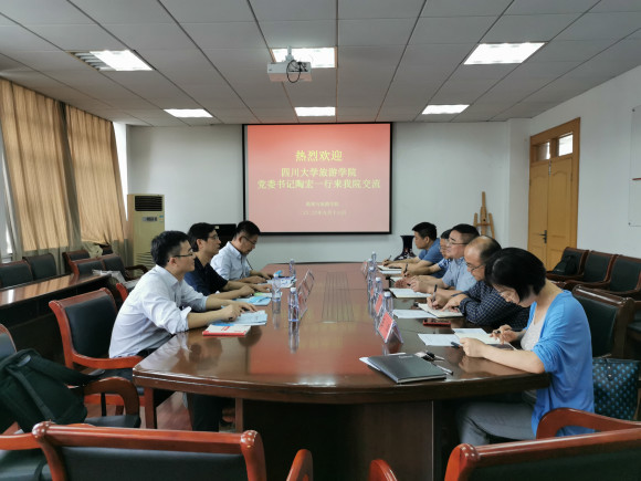 9月16日上午在学院行政楼四楼会议室,四川大学旅游学院党委书记陶宏、副院长李志勇、旅游与景观学系主任刘俊一行三人来必赢进行工作交流,必赢院长苏勤、党委书记贾冠忠、旅游专业负责人杨钊,旅游专业副主任尹寿兵、旅游专业副主任王群参加了座谈会。