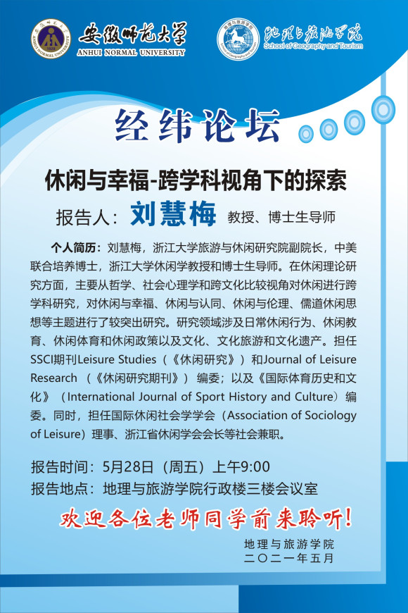 【学术预告】刘慧梅:休闲与幸福-跨学科视角下的探索